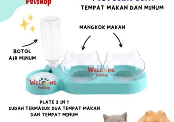 Pet Double Bowl Tempat Makan Minum 3 In 1 Set Anjing Kucing Kelinci
