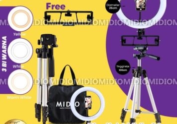 Ringlight Midio 26cm + Tripod 100cm + Holder U 360° + Bonus Socket 3 Sisi
